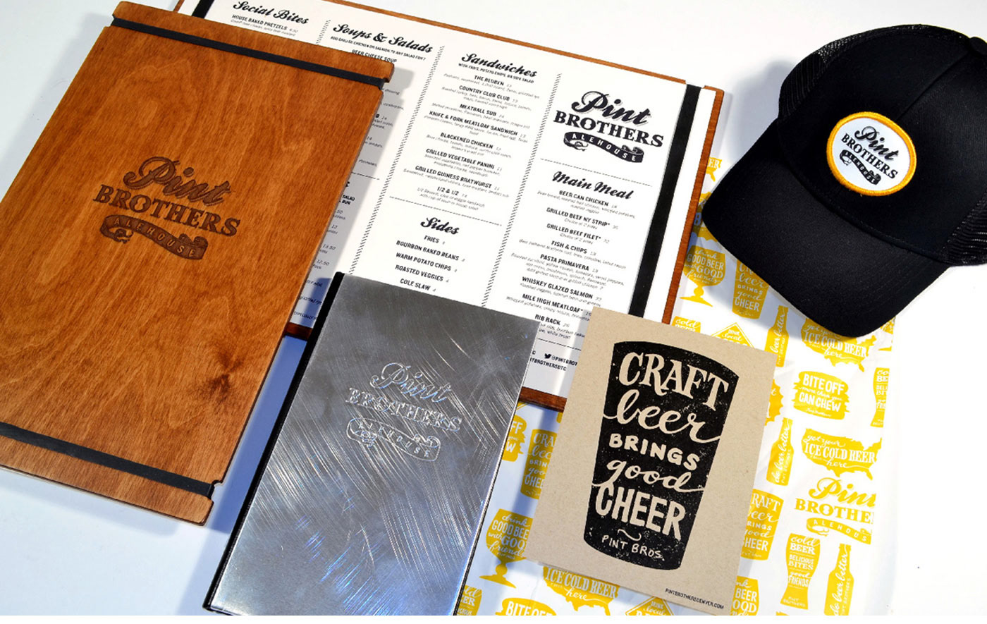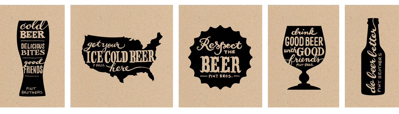 Logo, identity, menu, promotional, artwork, website, stationery, packaging, and advertising design for the launch of Pint Brothers in Denver — as well as coming up with the name and positioning of this concept alongside Sage Restaurant Concepts and Dash Design. Using a handful of different tongue-in-cheek beer slogans, hand-drawn sketchy typography and a ton of small, playful details, the final product was a welcoming, All-American indoor beer garden that would welcome you to the family to enjoy “cold beer, delicious bites and great friends.”