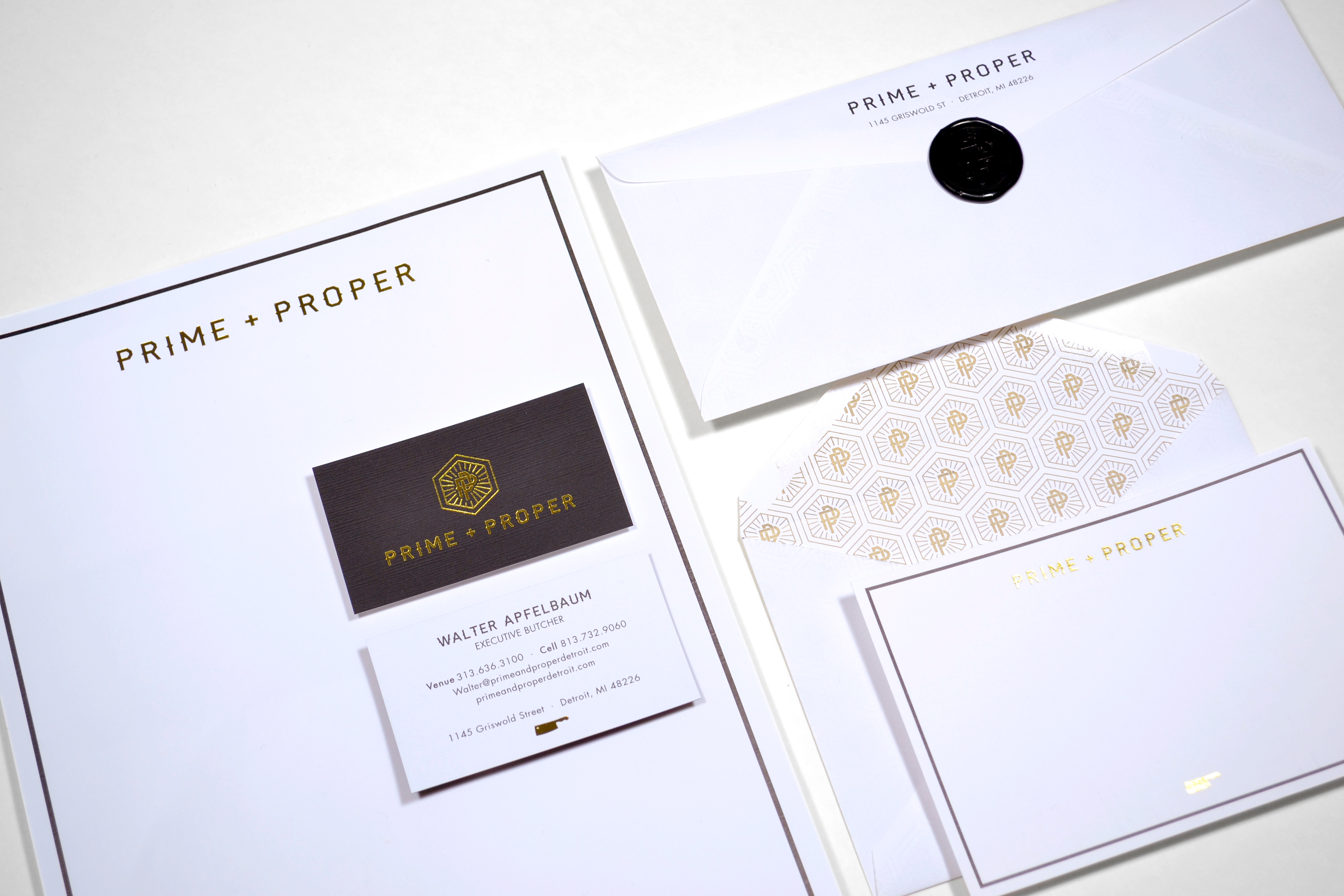 Prime + Proper was the decadent, innovative reinvention of a modern steakhouse by Detroit’s Heirloom Hospitality and restauranteur Jeremy Sasson. I collaborated with them on the naming, positioning and branding design & details for this sexy and elegant concept. The brand identity alone tried to marry classic steakhouse and supper clubs with modern vibes using classic typographic, clever logo marks, a metallic and B&W color palette, and intricate patterns.