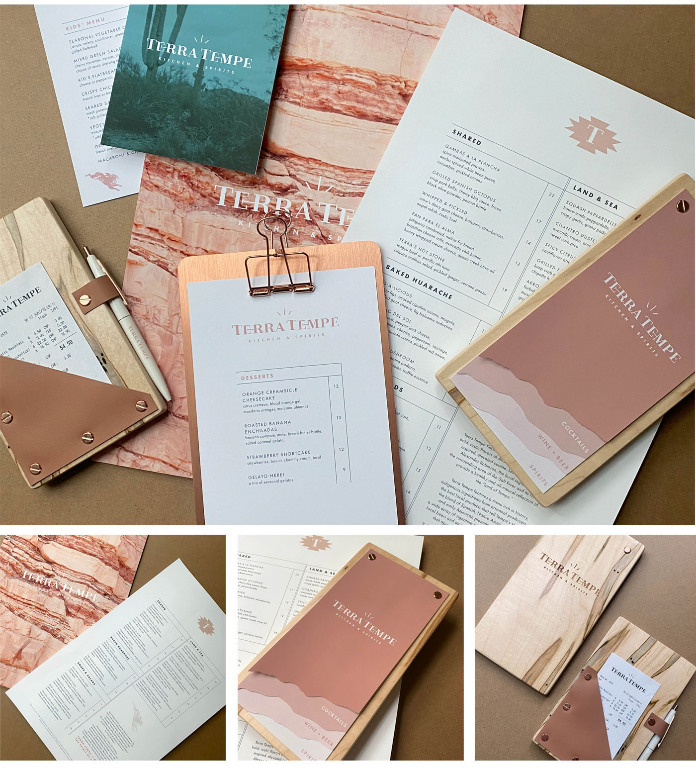 Naming, branding and logo design project for the chic Westin Tempe in Arizona. Project also included signage, a full menu system, and other accent details.